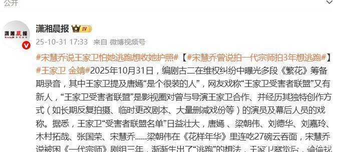 一则编剧维权纠纷,意外撕开了名导片场“家长式”关怀背后的残酷美学。10月31日,编剧古二在维权过程中曝光多段《繁花》筹备期录音,其中王家卫对唐嫣“是个很装的人”的评价,与其公开场合对演员的力挺形成刺眼反差,瞬间引爆舆论。